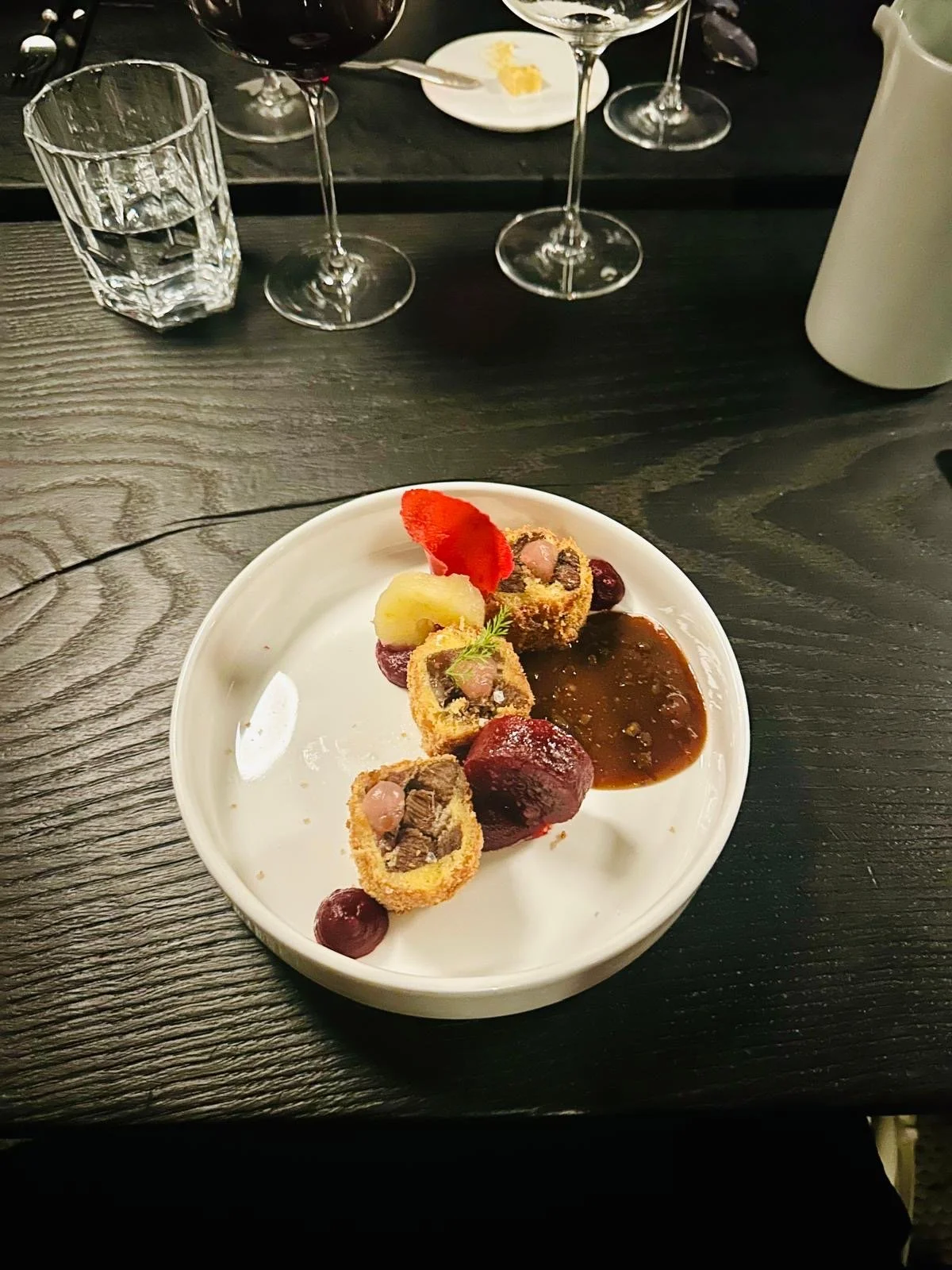 Wir hatten ein interessantes und geschmakvolles 4-Gänge Menü mit einer professionellen Weinbegleitung.